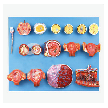 受精與早期胚胎發(fā)育過程模型 GD/A42002功能介紹■該模型由精子、卵巢、卵子、受精卵發(fā)育過程、胚盤、2-9周胚胎以及3月胎兒、胎盤等16個(gè)部件組成,并顯示從卵細(xì)胞發(fā)育到3月大小胎兒形成的人類早期胚...